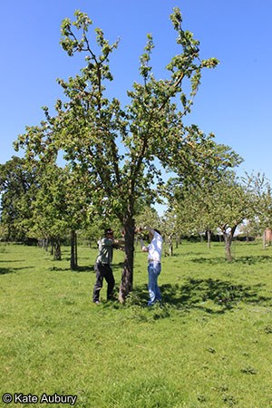 KCT work party volunteers repairing guards, Lillans Orchard |